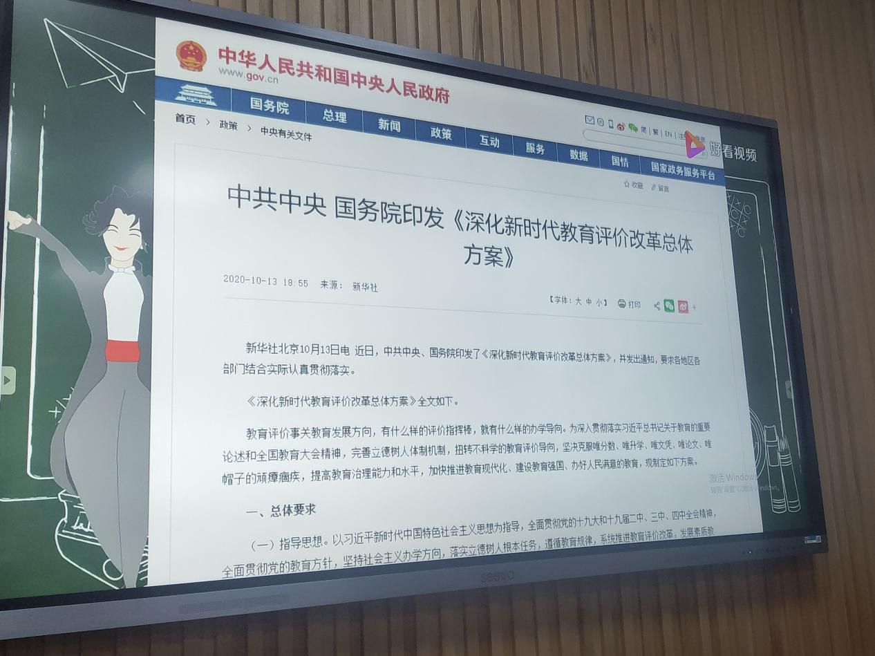 在学习《深化时代教育评价改革总体方案》环节,大家一起观看了相关介绍视频,了解教育评价改革的五个方面任务,即改革党委和政府教育工作评价、改革学校评价、改革教师评价、改革学生评价和改革用人评价,并对如何打破唯分数、唯文凭论等问题做了思考。贾露雅同学分享到:“教育评价事关教育发展方向,有什么样的评价指挥棒,就有什么样的办学导向。办好让人民满意的教育,是我们党一直以来不懈的追求。我们身为马学科研究生,青年党员,更要积极响应号召,树立终身学习的观念、不断提高自身综合素质,为实现中华民族伟大复兴中国梦添砖加瓦。”