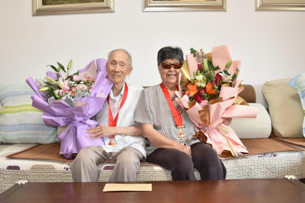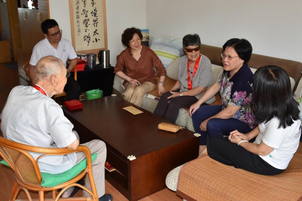 来到两位退休教师家中,周建波副书记一行四人热情向两位老同志问好,周建波为他们庄严佩戴了“光荣在党50年”纪念章,并代表学校向他们表达了慰问,向他们长期以来为党、为学校做出的贡献表示衷心感谢。随后,四位领导同两位老同志进行了亲切愉快的交流。