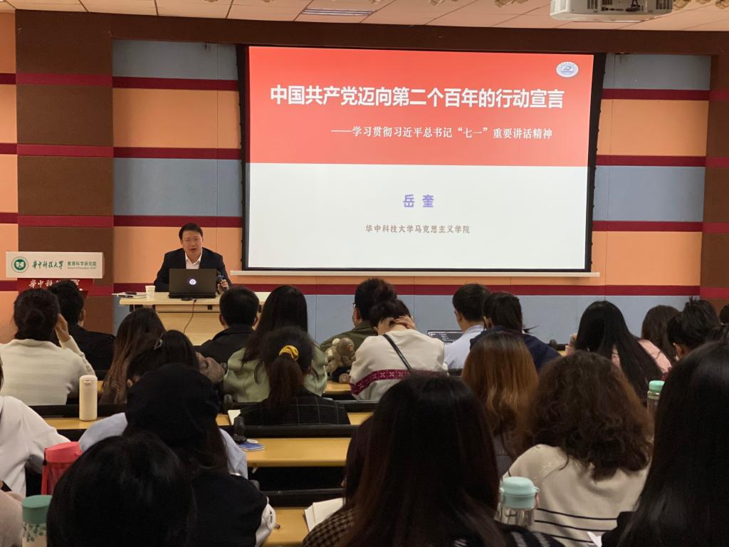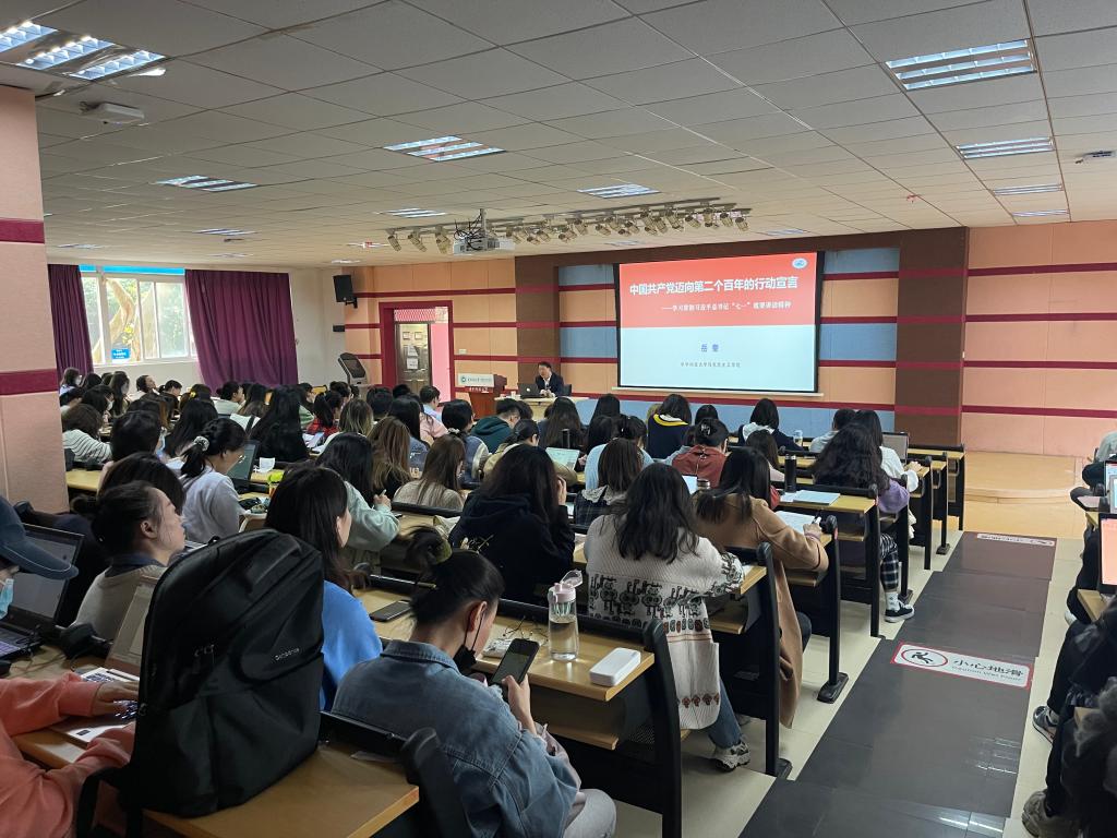 为深入学习贯彻习近平总书记“七一”重要讲话精神,进一步提升全院党员同学的思想理论素养。10月28日下午,我院院长岳奎带来题为《中国共产党迈向第二个百年的行动宣言——学习贯彻习近平总书记“七一”重要讲话精神》的专题党课。报告厅座无虚席,同学们全神贯注,认真听讲。