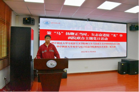 为深入贯彻落实党的二十大精神,进一步推进校史校情学习教育,2022年11月20日下午,WilliamHill威廉希尔硕士生马克思主义中国化研究党支部和光学与电子信息学院激光技术系第二党支部于东七楼203教室与校史馆开展联合主题党日活动。活动由马中化党支部副书记陈泽宇同志主持,马中化党支部研一党小组、激光技术系第二党支部党员与入党积极分子参与。