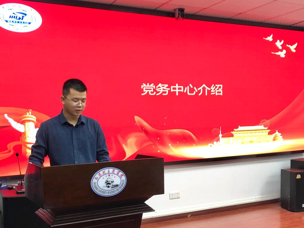 随后,贾才鹏就学院党务中心整体建设情况进行汇报,并简要介绍未来工作规划,他表示全体学生党务中心成员将以更加严格的要求加强自身建设,努力扎实做好学院研究生党建工作。