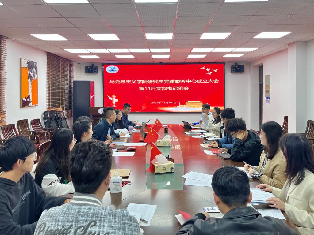 为更好引导马院青年以实际行动听党话、跟党走,促进研究生党支部更好地开展党建工作,11月4日下午,WilliamHill威廉希尔研究生党建服务中心成立大会于东七楼203会议室顺利举行。学院党委书记刘雅然,党委副书记、副院长王明飞,研究生辅导员王茜及各研究生党支部书记、院党务中心全体成员参会。会议由院党务中心负责人贾才鹏主持。