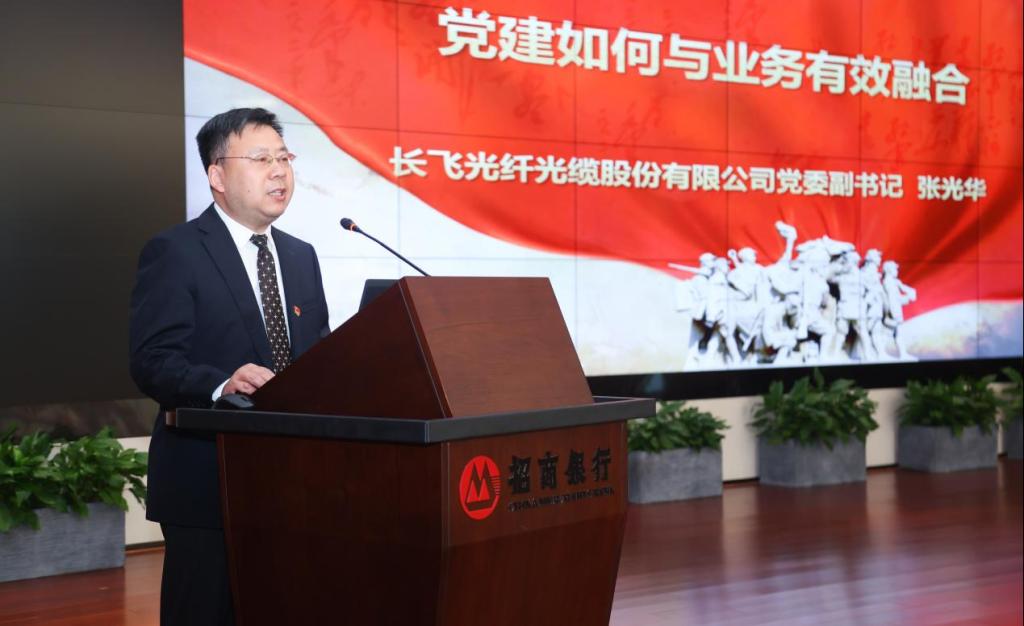 长飞光纤光缆股份有限公司党委常务副书记张光华以《党建如何与业务有效融合》为题,就“热干面”工作法向与会代表作交流分享,重点介绍公司把党建工作融入职工思想教育、生产管理、技术创新、企业文化、社会责任等各个方面,以高质量党建引领企业高质量发展的具体实践。