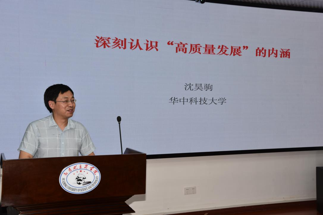 首先,沈昊驹以“深刻认识‘高质量发展’的内涵”为题,从“对经济发展阶段性特征的深刻认识”、“完整、准确、全面贯彻新发展理念”以及“实现高质量发展的战略部署”三个方面带领大家充分认识高质量发展理念的科学内涵和基本要求。他指出,立足新发展阶段,要以高质量发展为主题,把新发展理念贯穿发展全过程和各领域,不断破解发展难题、增强发展动力、厚植发展优势、加快构建新发展格局,中国经济才能在高质量发展的道路上不断书写新篇章,迎来更加光明的美好前景。