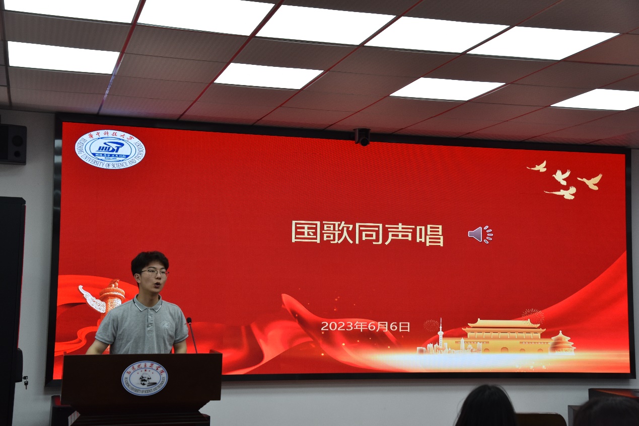 活动开始时,全体支部成员庄重肃立、齐唱国歌,在嘹亮国歌声中感悟先辈革命斗争、充沛自身学习热情,进而开启此次党课学习。