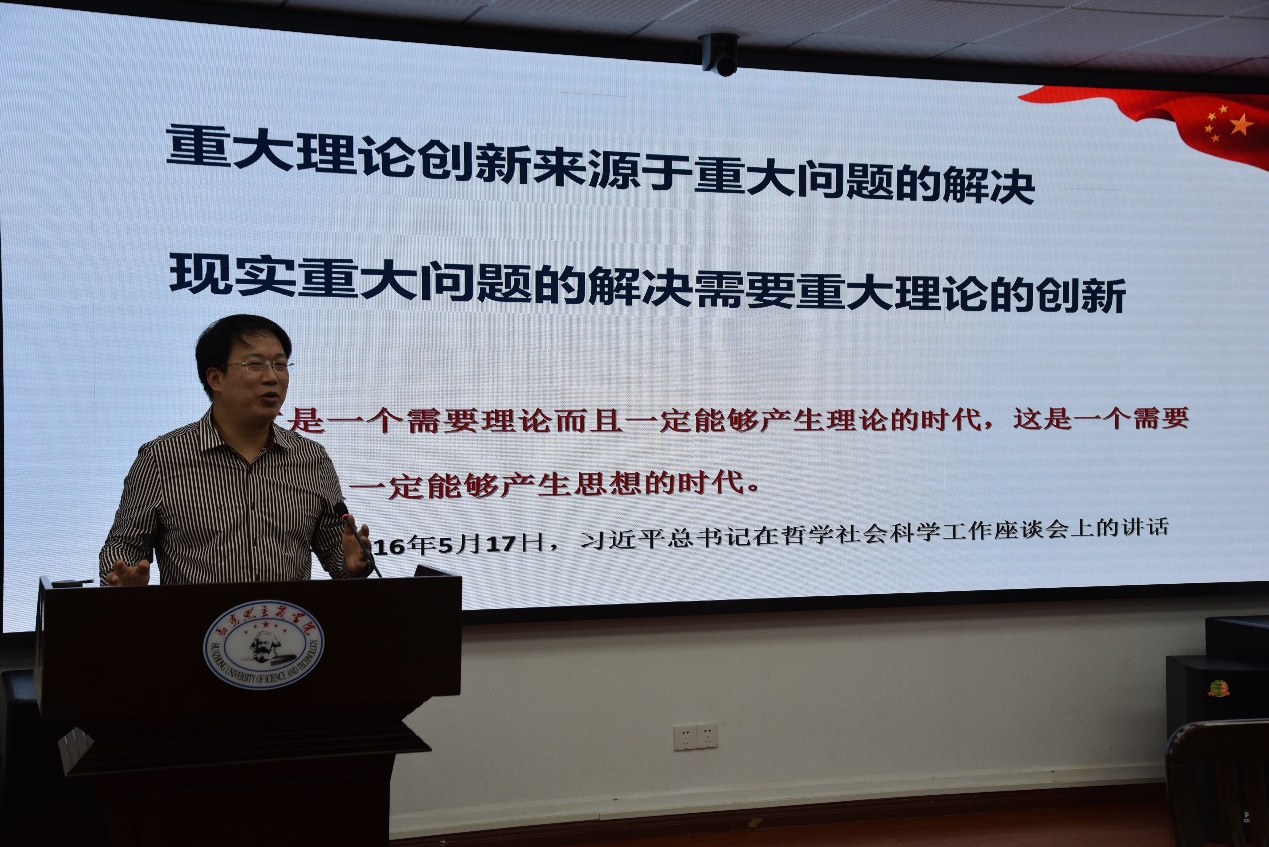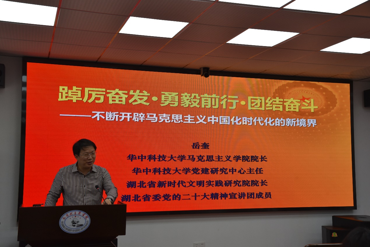 岳奎院长以《踔厉奋发·勇毅前行·团结奋斗——不断开辟马克思主义中国化时代化的新境界》为题,向支部党员上了一堂既生动活泼又具思想深度的党课。岳奎指出,习近平新时代中国特色社会主义思想对中国共产党最大的贡献就是指导中国共产党如何从大党变成强党。岳奎用习近平同志青年时期在基层艰苦磨炼、爱民务实的事迹,向支部党员呈现了习近平总书记坚定的理想信念、真挚的人民情怀、无畏的担当精神、鲜明的问题导向、高度的自信自觉五大崇高个人品质,指出这些品质同习近平新时代中国特色社会主义思想的理论品质之间有高度融合性。岳奎从习近平新时代中国特色社会主义思想的形成条件、核心内容、重大意义三个方面阐发马克思主义中国化时代化的最新境界。最后,岳奎希望青年同志学习掌握习近平新时代中国特色社会主义的世界观和方法论,用以开辟自身未来、助力复兴伟业。