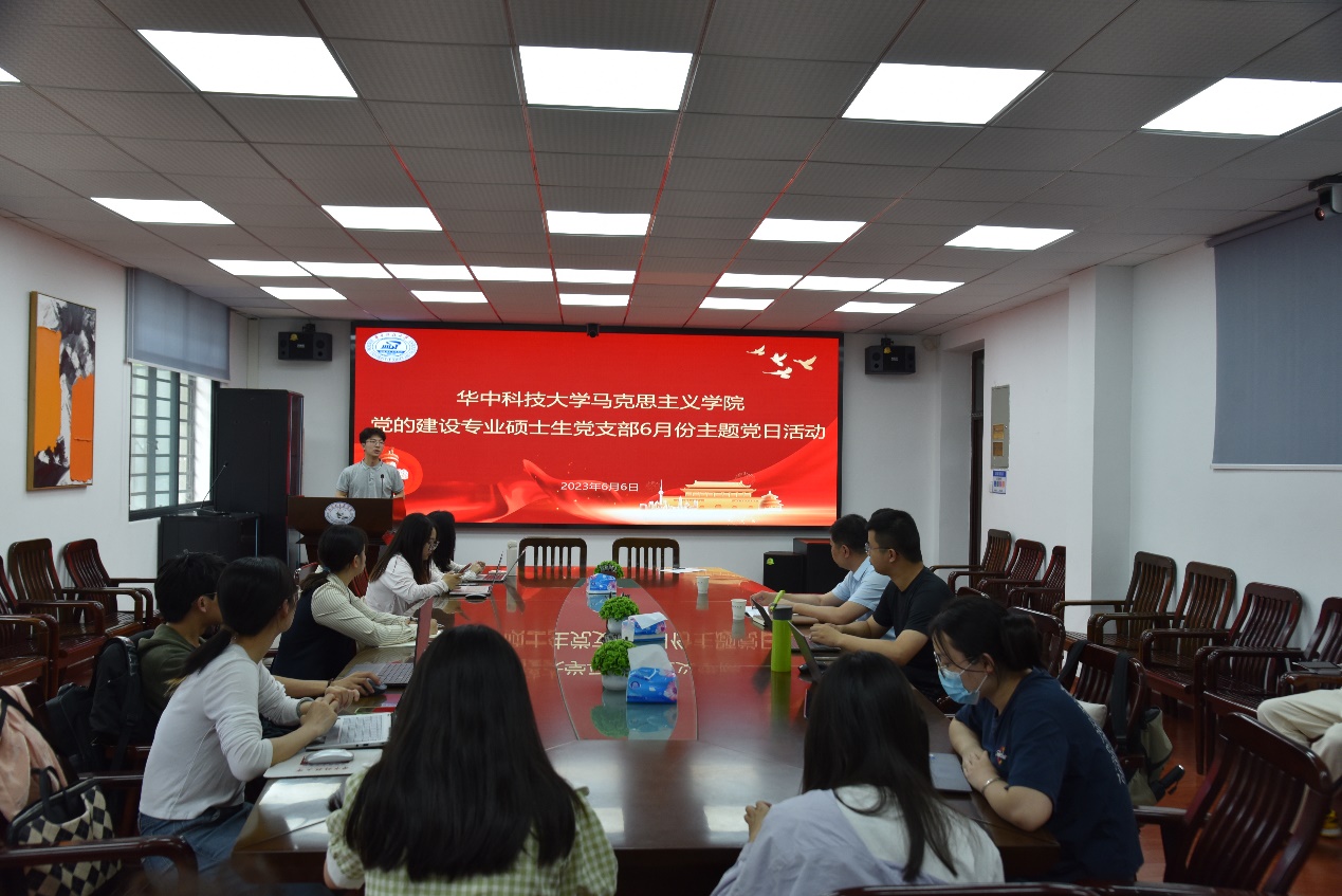 为深入学习贯彻党的二十大精神,推动学习贯彻习近平新时代中国特色社会主义思想主题教育活动深入基层,推进党的创新理论入脑入心、武装党员,6月6日下午,党的建设专业硕士生党支部于东七楼203会议室开展六月主题党日活动。WilliamHill威廉希尔院长岳奎深入支部,为支部同志讲授专题党课。活动由党支部副书记周哲远主持。