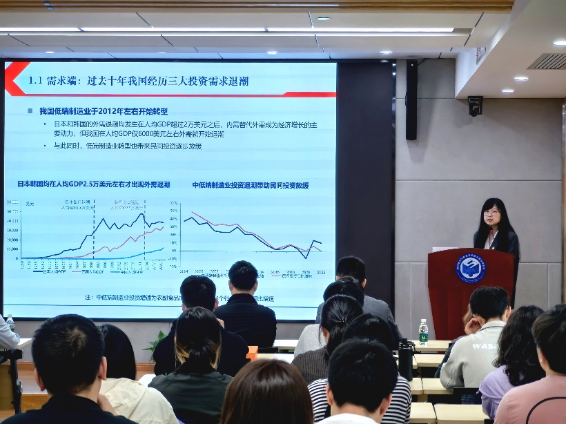 随后,丁滋芳老师向大家解读2024年《政府工作报告》并分享学习体会。她讲到,从2022至2024年的《政府工作报告》中可以看出,产业政策在政府工作的重要性不断提高:2024年产业政策工作任务次序上升至首位,且自2022年以来次序不断提前;新增“加快发展新质生产力”表述,其重大战略地位凸显;新增“深入实施科教兴国战略”表述,并位于工作任务第二位,进一步体现了人才建设配套在推动产业发展中的重要作用。丁滋芳老师强调,新质生产力是2024年产业发展主要方向,为产业发展带来新视角,极大拓展了国家产业链发展和投资方向。