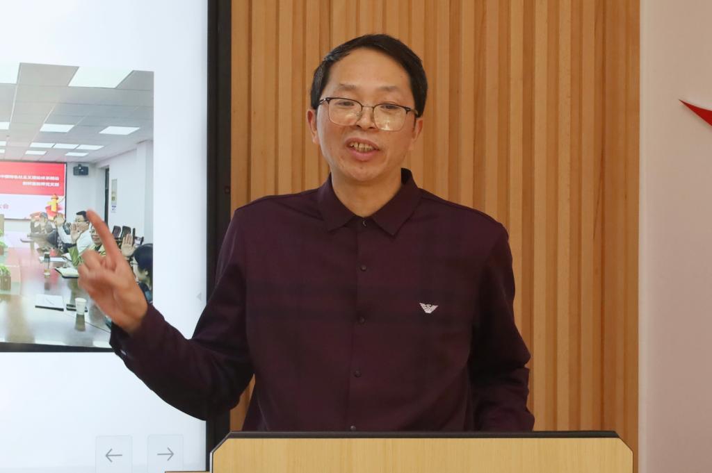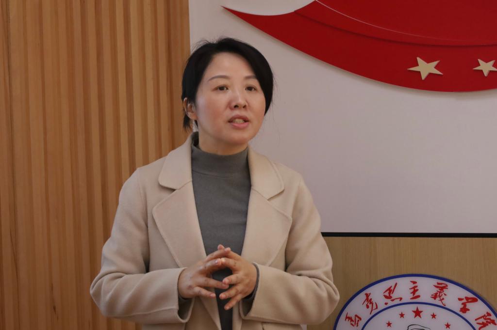 习近平新时代中国特色社会主义思想概论教研中心教师党支部书记尹旦萍从加强党的政治建设、强化党的创新理论武装、提高党建工作质量、推动“党建-业务”工作深度融合四个方面汇报了支部全年的工作情况和成果,同时她认为当前支部存在党建经验不足、社会服务形式不丰富等问题,表示未来将继续发挥支部优势,推动开创党建工作新局面。
