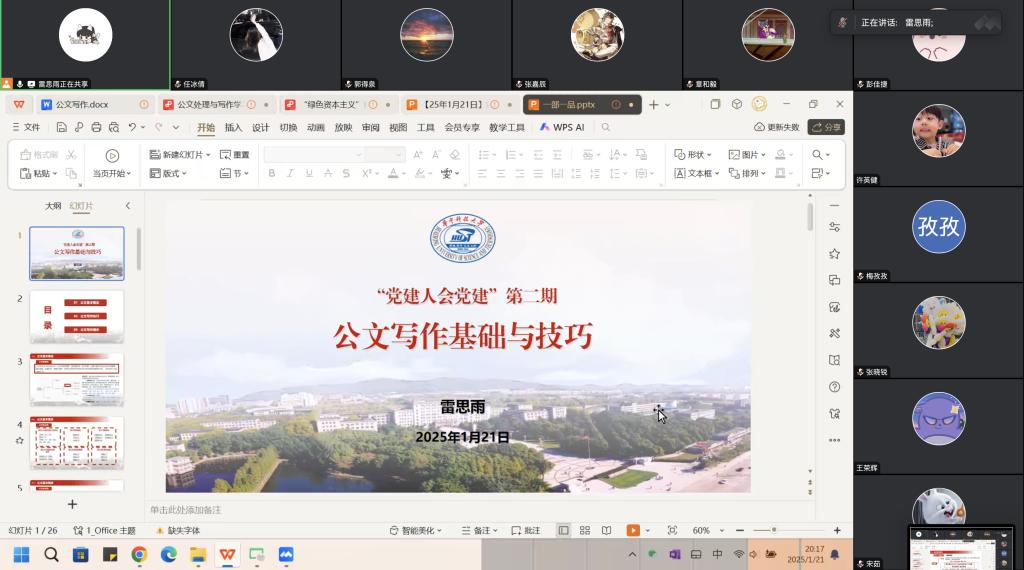 随后,在“党建人会党建”环节中,支部书记雷思雨为大家讲授“公文写作基础与技巧”专题课程。从公文基本概念、公文写作技巧、公文写作提示三个方面,她带领支部同志学习提升写作质量的方法,让公文表意精准、条理清晰,为将来的实践和就业打下基础。