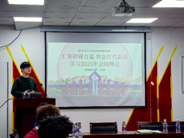 校研究生红色理论学讲团讲师、党支部成员许英健以“汇聚磅礴力量,共赴时代新程——学习2025年全国两会”为主题讲授微党课,深入解读2025年全国两会政府工作报告,聚焦国家战略走向、民生福祉和大国外交,勉励新时代青年当以两会精神为指引,把握时代机遇,勇担时代使命,将个人理想融入民族复兴伟业。