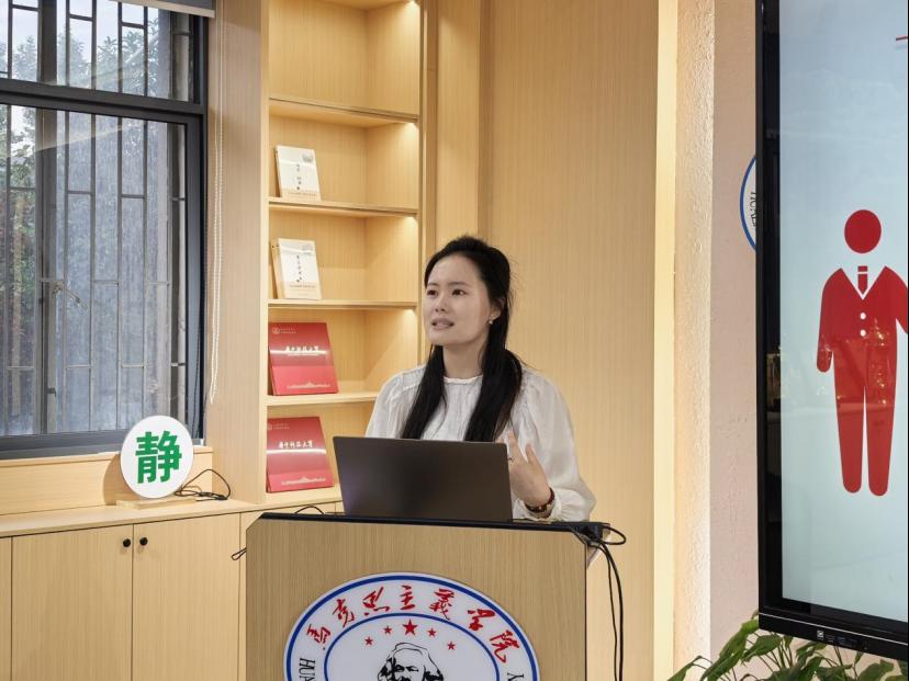 活动伊始,支部书记杨培妍围绕中央八项规定及其精神讲授党课。她深入剖析了中央八项规定的出台背景,逐条解读其具体要求,并就中央八项规定精神进行细致阐述。她特别强调,作为新时代的青年党员,要在日常学习、工作和生活中,严格遵守中央八项规定精神,保持共产党员的优良作风。