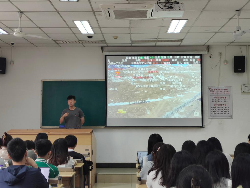 此次主题团日活动以“喜迎二十大、永远跟党走、奋进新征程”为主题,采取自由分组、小组展示的形式进行筹备。各个小组的团员围绕政治、经济、文化、社会、生态等主题新时代的青年力量进行了宣讲与解读。第一组从青年抗疫志愿者的行动与担当入手, 对当代大学生们勇担时代使命的无私奉献与勇担责任意志进行了阐发。第二组重温奥运精神,从“胸怀大局、自信开放、迎难而上、追求卓越、共创未来”冬奥精神出发,展现了中国实现双奥梦进程中的青年拼搏精神。第三组主讲人沈阳结合自身从军经历,从中印边境冲突矛盾事件为切入点,思考了当代如何有志气、底气和骨气来承担时代使命,不负人民期望。第四组以扶贫日记里的青春之歌为主题,通过情景剧形式生动的展示了大学生们投身乡村、脱贫攻坚的现实缩影。第五组以学习弘扬塞罕坝精神,做奋斗青年为主题,对塞罕坝的前世今生进行了讲解,并对一代代塞罕坝林场人的精神进行深刻诠释。第六组以青年人的时代担当为主题。展现了百年历史里不变的青春奋斗和青年担当的风采。第七组围绕党领导下的百年青年运动奋斗历程进行宣讲,激励着青年团员作为时代新人要接过时代接力棒,承担起时代所赋予的伟大使命。第八组向大家讲述了生态文明建设中的青年力量。对十八大以来我国的环境保护成就和青年人的奋斗与担当进行了细致讲解。