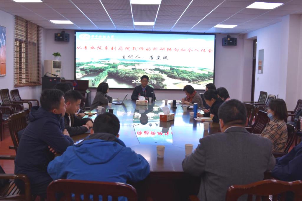 首先,唐皇凤教授结合自身科研经历,对教师如何更好地实现从专业院系到马院教师的转变提出四点经验。即:一要转变观念,去认同和理解马学科的独特学术价值;二要树立学术自信,在方法上以马克思主义理论体系为基础,求同存异,创新话语体系;三要正确处理发文章和做研究的关系;四要砥砺奋斗,在申报课题时,敢于去尝试、去争取、多吃苦,并保持良好心态。