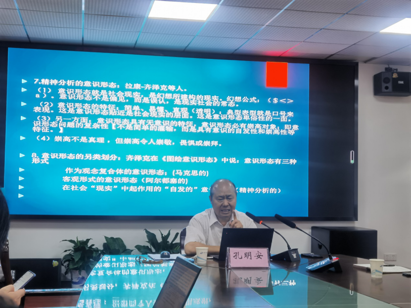 孔明安教授重新梳理并介绍了第二国际前后的马克思主义,向我院师生讲解了有关马克思思想形成过程中有关第二国际和第三国际的某些问题的争论,重点介绍了有关第二国际的修正主义和机械论,讲解了资本主义的“适应论”与卢森堡的“崩溃论”之争。孔明安教授重点研究的第二个问题是意识形态问题。他向我院师生介绍了特拉西、马克思、列宁、哈贝马斯等人有关意识形态的观点,重点讲解了葛兰西的市民社会与意识形态的霸权理论的形成与相关内容,以及阿尔都塞实体论的意识形态观点,重点介绍了精神分析的意识形态,提出意识形态具有崇高性等特性。接着,孔明安教授讲解了拜物教问题,提出拜物教的三个领域:政治权力、宗教和商品拜物教。