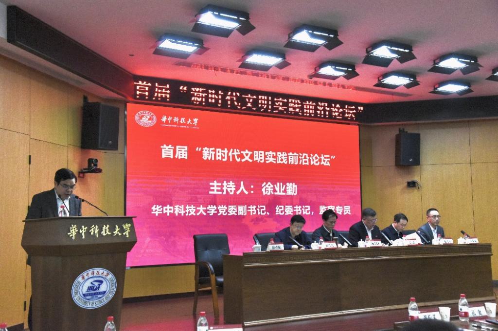 4月15日,首届“新时代文明实践前沿论坛”在威廉中国官方举行。中央文明办二局局长熊大同,湖北省委宣传部副部长黄学龙,中国工程院院士、校长尤政,国家哲学社会科学一级教授、原中央党校校委委员韩庆祥,人大常委、教科文卫委员会副主任、湖北省新时代文明实践研究院名誉院长喻立平参加开幕式,开幕式由校党委副书记、纪委书记徐业勤主持。