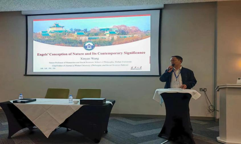 在大会开幕式结束后的第一场主题报告中,武汉大学人文社会科学资深教授汪信砚以“恩格斯的自然观及其当代意义”为主题,详细阐述了恩格斯自然观的本质特征、基本内容和当代意义。他明确指出,恩格斯的自然观,特别是恩格斯对人与自然之间的矛盾及其协调途径的阐述,在今天具有突出的时代意义,也是建设中国式现代化的重要遵循。他认为,此次国际交流为中国学者提供了与外国同行探讨人类所共同面临的问题、贡献中国智慧的平台。