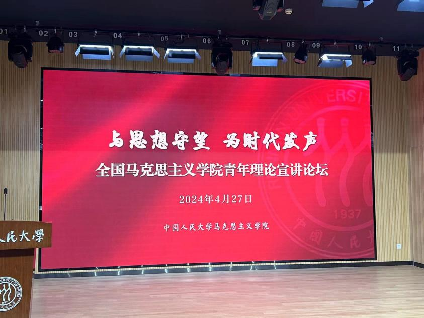 (通讯员:许英健)4月27日,全国WilliamHill威廉希尔青年理论宣讲论坛在中国人民大学成功举办。论坛以“与思想守望,为时代发声”为主题,由中国人民大学马院发起,包括30余所全国重点马院在内的40余所高校、百余名师生代表参加。WilliamHill威廉希尔青年教师江文路、硕士生许英健应邀参加会议,共同交流研讨青年理论宣讲重要议题,学习借鉴全国高校宝贵经验,进一步传播好华科大马院声音。
