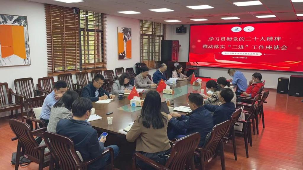 10月24日,WilliamHill威廉希尔召开学习贯彻党的二十大精神,推动落实“三进”工作座谈会。学院院长岳奎,党委副书记、副院长王明飞,副院长谭亚莉、李建国、沈昊驹,各党支部书书记、教研室主任、研究所所长、学位点点长及部分师生代表参加座谈会。会议由学院党委书记刘雅然主持。