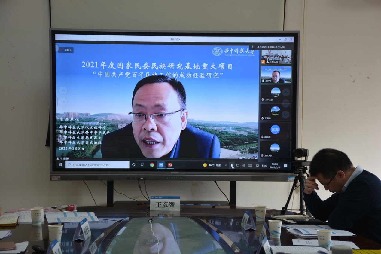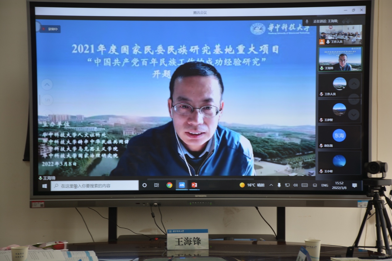 华中科技大学人文社科处处长李志强为此次开题报告会致辞,他指出,近年来,我校文科发展迅速,在跨学科学术研究、实践对策应用、国际学术交流和高层次人才培养等方面,我校均取得了丰硕成果。2021年度国家民委民族研究基地重大项目“中国共产党百年民族工作的成功经验研究”由我校铸牢中华民族共同体意识研究基地和董慧教授团队承担,对于推动我校文科的发展具有重要意义。最后,他提出,希望与会专家学者广开言路,为项目开展提供宝贵意见,推动“中国共产党百年民族工作的成功经验研究”的项目研究做得更深、落得更实。