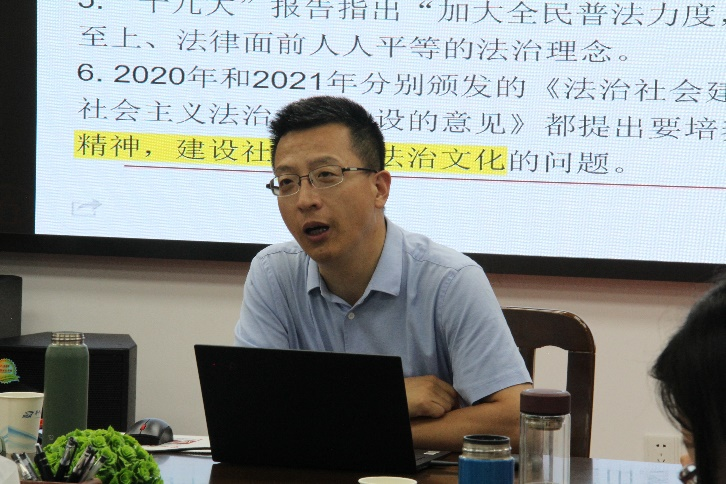 会上,李志强结合党的二十大报告内容,对“德法”教材法治部分的教学设计展开论述,重点围绕社会主义法治精神,就其提出的历程、演绎逻辑、内涵外延和具体内容进行了深入浅出的讲解。他从二十个问题入手,对“弘扬社会主义法治精神”这一议题在教学过程中的具体设计进行了逐一演示和分析,为大家带来了一堂生动精彩的演说课。