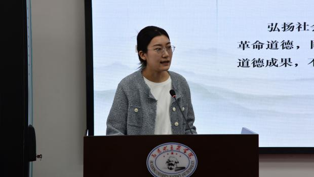 接着,会议进入教学展示环节。万晶晶针对“社会主义核心价值观有哪些特征”这一主题首先进行了说课展示。随后禹泳如、常晓璐、熊雅妮、贾经铭、郭玉杰、张登皓依次对负责讲解的章节进行了展示。赵志坚、张蕾、阮丽萍以及其他与会教师分别从学理法理、内容设计、案例素材、学生互动等方面对教学设计提出了改进建议。