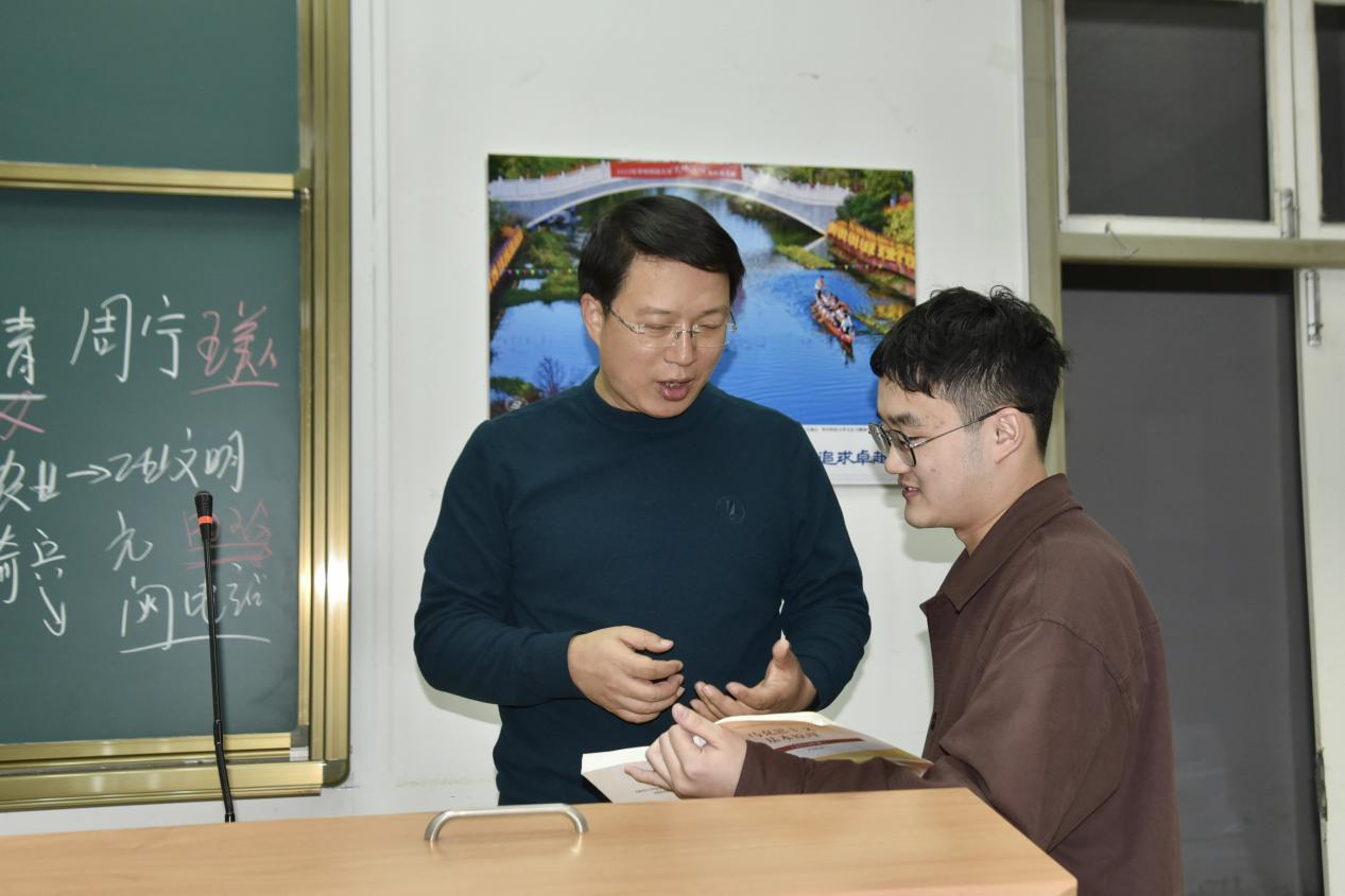 课后,同学们针对课堂内容与岳奎老师进行提问交流。岳奎老师对大家的积极态度表示肯定,并逐一解答同学们的疑惑,帮助大家用更加全面客观的视角把握社会主义建设规律与人类社会发展规律。
