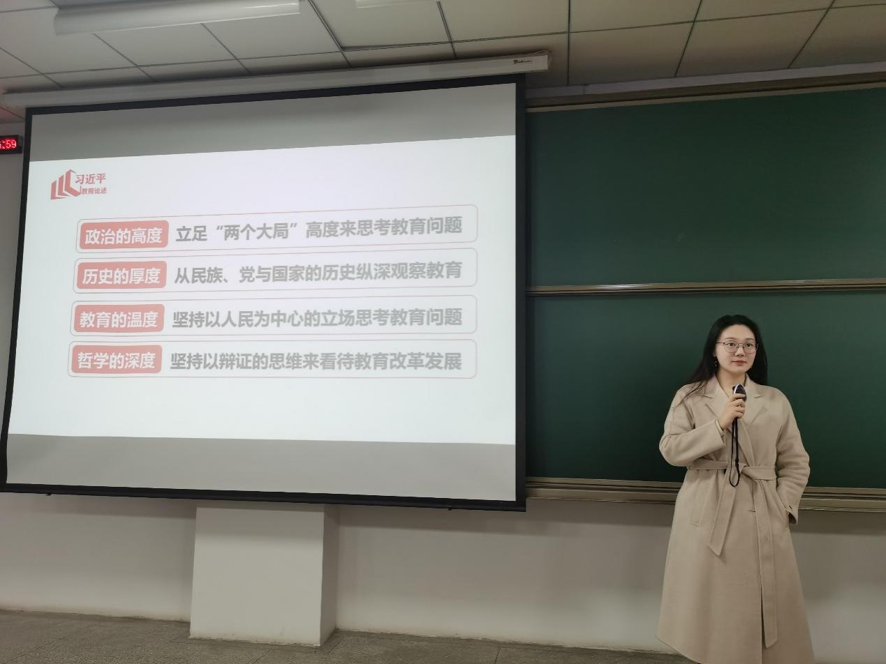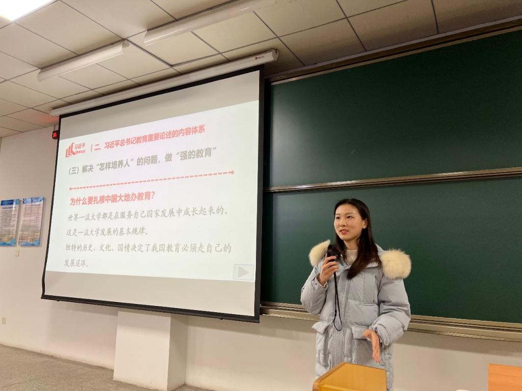 秦明月老师重点围绕《习近平总书记教育重要论述讲义》,结合“ChatGPT”“逆全球化”等时事热点话题,深入浅出地讲解了教育重要论述的战略地位及九个坚持的重要意义,生动阐释了“培养什么人,怎样培养人,为谁培养人”这一建设教育强国的核心课题。