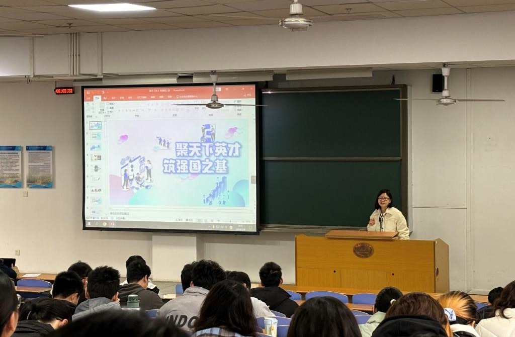 丁卉老师以“聚天下英才,筑强国之基”为题,通过小组讨论、师生互动等多样化形式,系统讲解了以习近平同志为核心的党中央在人才工作中推动新时代人才事业发展的新思想、新要求、新举措,鼓励同学们让勤奋学习成为青春远航、成长成才的动力。