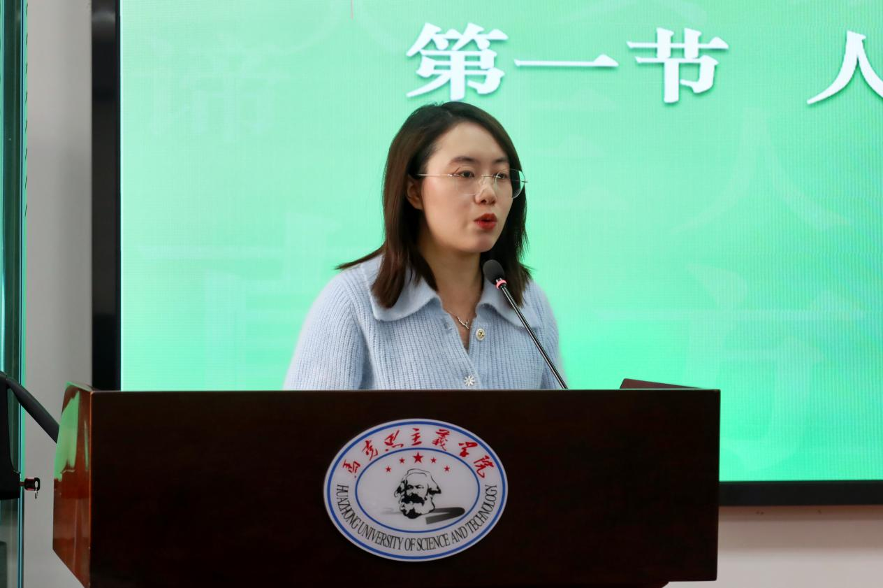 随后,常晓璐、熊雅妮、范宁宇三位老师进行了“精彩一课”的说课分享。常晓璐老师围绕课本第二章第一节的内容,从人生目的、人生态度、人生意义三个方面讲解了“人生观是对人生总的看法”;熊雅妮老师从“爱国主义是什么”“为什么爱国爱党爱社会主义是一致的”“如何坚持爱国爱党爱社会主义相统一”三个方面讲解了第三章第二节的知识点;范宁宇老师以“让改革创新成为青春远航的动力”为主题,通过具体场景和相关案例带领大家回顾了改革开放以来我国取得的创新成就。