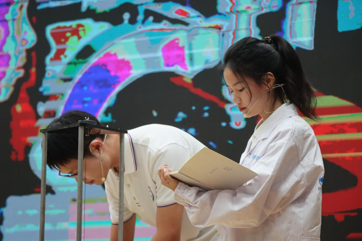 在场学生在老师和课程演绎者们绘声绘色的讲述中,一同溯源华科大七十多年的砥砺奋进史,了解华科大优秀科技工作者潜心科研、为国争光的先进事迹,深切感悟到科学家精神的丰富内涵。