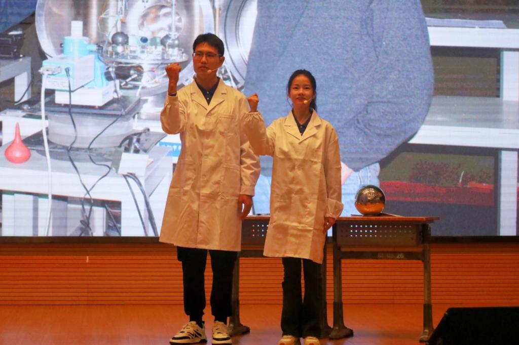 随后,课程团队以情景剧的方式将多个科学家故事娓娓道来。洞中“引力人”罗俊院士及其团队在防空洞中深耕三十年,成功测出迄今最高精度万有引力常数G值;华工激光的科学家们潜心研究二十余年,致力于推进高端激光技术国产化、工业化、产业化应用,为中国激光赢得全球话语权;华科大EDA团队首次参加国际芯片设计大赛便一举夺冠,他们让创新求索、拼搏向上的中国青年形象走上世界舞台。