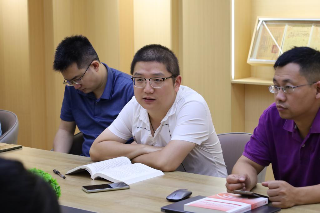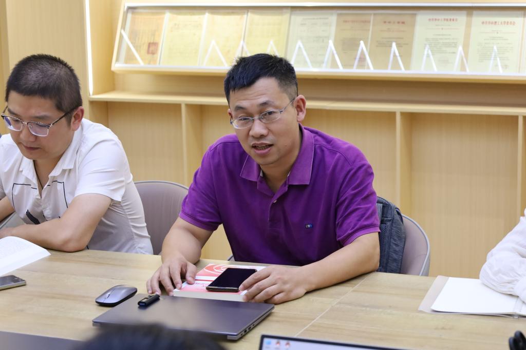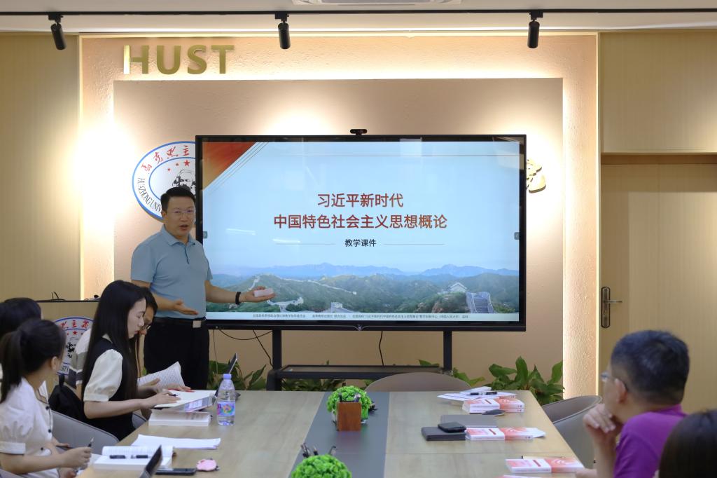 随后,岳奎就自己的备课经验进行分享,通过系统的教学课件和生动的说课示范向老师们具体展示了《习近平新时代中国特色社会主义思想概论》课堂教学的重难点。他强调,除了做好课堂知识点的教授,老师们也要不断加深自己的学识积累,帮助解决好同学们提出的疑难困惑。