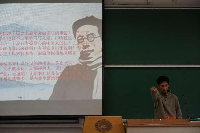 在彭鹤翔老师的中国近现代史纲要课堂上,计算机科学与技术学院、光学与电子信息学院2022级的同学们选取“100位为新中国成立作出突出贡献的英雄模范人物”,以第一人称视角为他们制作简历,并在课堂上做起了“自我介绍”,让历史人物登上了纲要课堂的讲台。