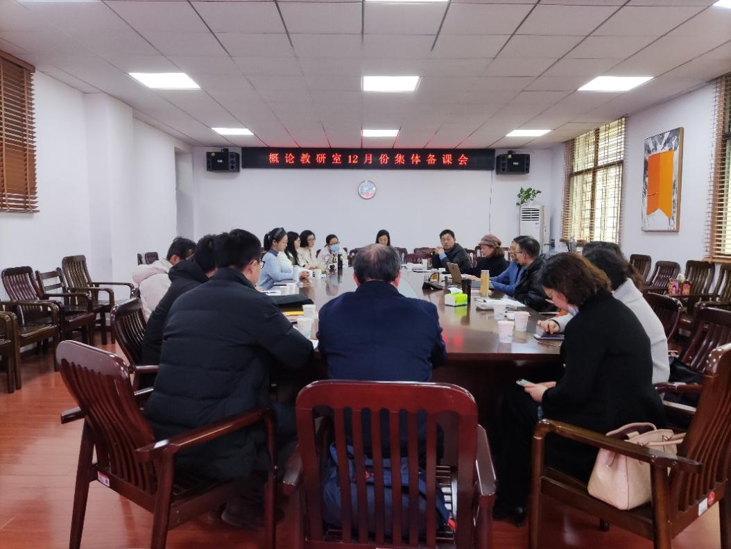 2021年12月14日下午,WilliamHill威廉希尔概论教研室在东七楼203会议室召开12月份集体备课会。岳奎院长、概论教研室全体教师及黄金芳、朱文婷、王锐、江文路老师参加了会议。本次集体备课会主要围绕“毛泽东思想和中国特色社会主义理论体系概论”课堂教学要求和教材第十章“五位一体”总体布局的内容展开。