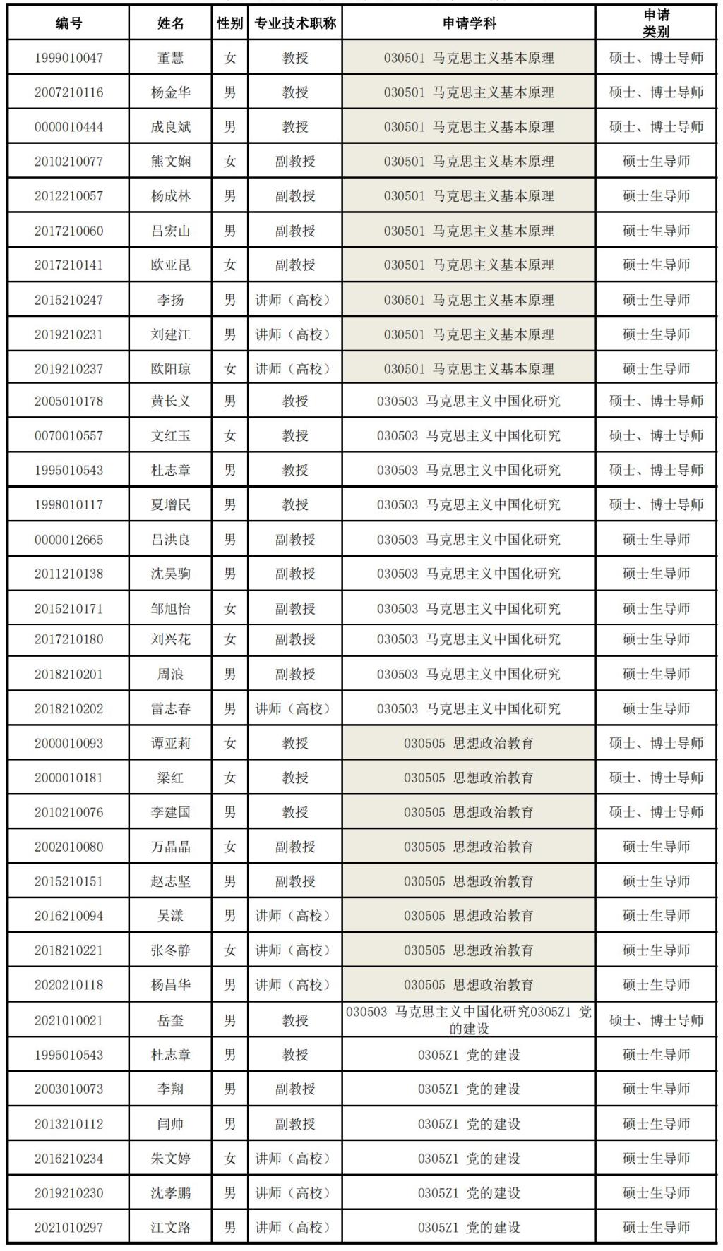 2023年具备招收研究生导师资格名单