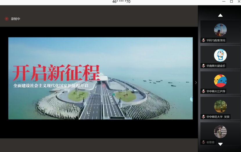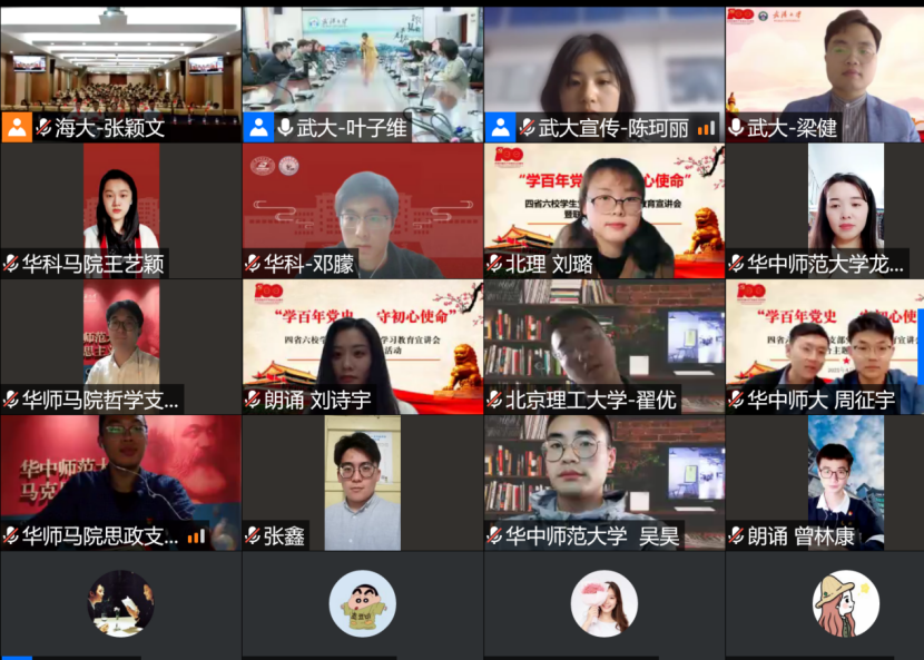 《论中国共产党历史》一书,是全党全社会深入学习习近平新时代中国特色社会主义思想、学习中国共产党历史的权威教材。接着,来自六校的9名学生党员以线上接力的方式朗诵了习近平《论中国共产党历史》中《知史爱党、知史爱国》《革命精神是党和国家的宝贵精神财富》等篇章。在篇章朗诵中领悟党的初心和使命,更加坚定对党的信心信赖、对马克思主义和社会主义的信仰信念、汲取奋斗前行的思想智慧和精神力量。