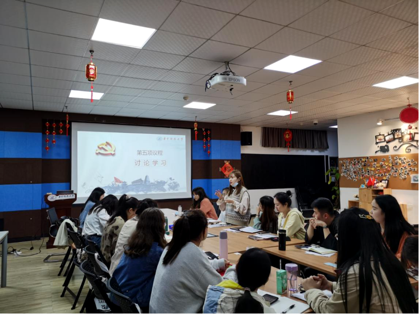 在党课结束后,支部组织了学习交流环节,党小组也充分发挥作用,每组由一名代表汇报了学习和交流成果。第一党小组朱瑶同志和大家分享了最近热播电视剧《觉醒年代》。她谈到:这部作品首次以电视剧的形式回溯了中国共产党的起源和孕育过程,并和大家分享了剧中所描写的陈独秀、李大钊等人的青春炽热事件,也希望我们青年党员能利用各种资源把党的历史学习好;第二党小组的孙梦岩同志为大家分享了自己参与红安实践活动的感受,她认为通过红色之旅,能够更加切实的感受这部伟大的历史,坚定理想信念,传承红色基因;第三党小组的宋宗丹同志结合我们学校、学院举办的有关的党史学习活动谈到:回望过往奋斗路的过程中是为了更好地眺望前方的奋进路,所以希望支部同志能积极参与活动,把党的历史传承好、发扬好。