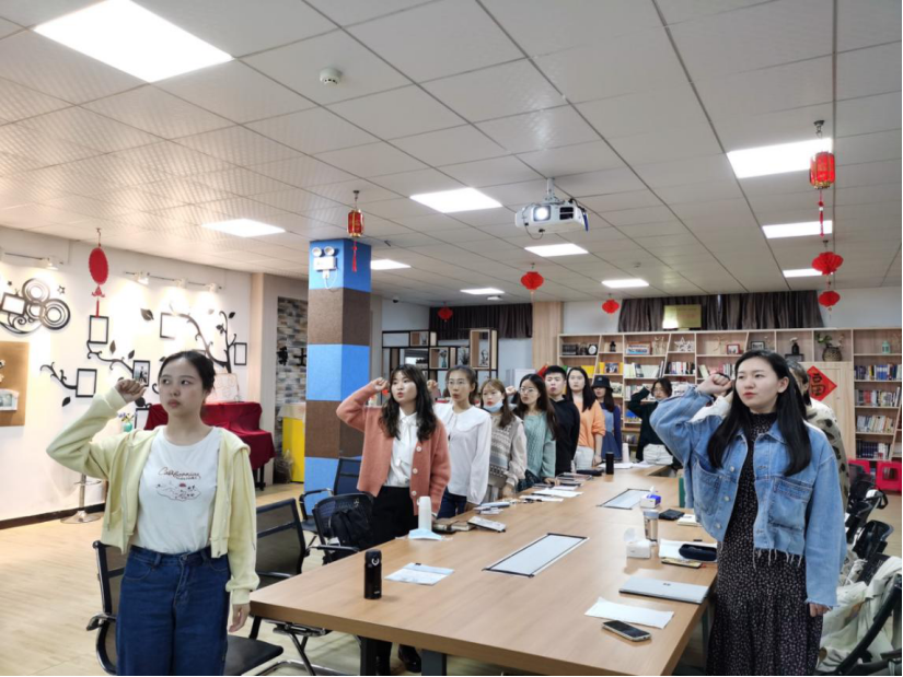 18时30分,组织生活会正式开始。杜诗怡同志带领党员同志进行宣誓,在重温入党誓词的过程中找寻初心,坚定信仰。之后,入党积极分子黄彦墁带领党员同志进行了理论测试,“以考促学”的方式加强理论学习。