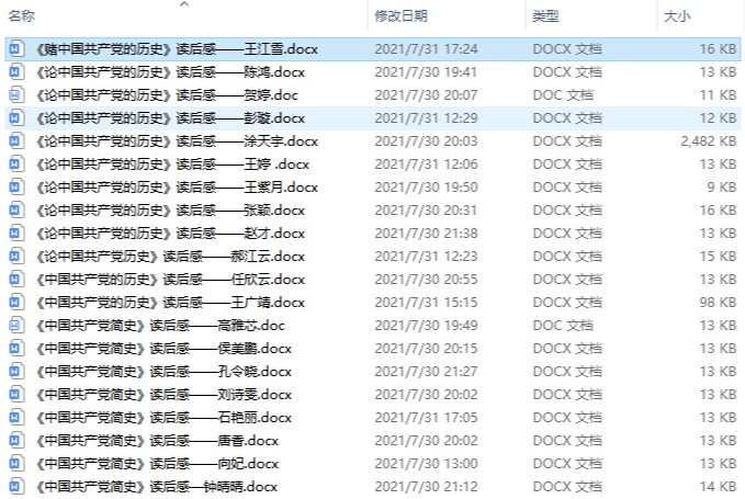 除去发言的几位党员,支部的每一位党员都学习了《中国共产党的历史》《中国共产党简史》,并认真写下了自己的心得体会。