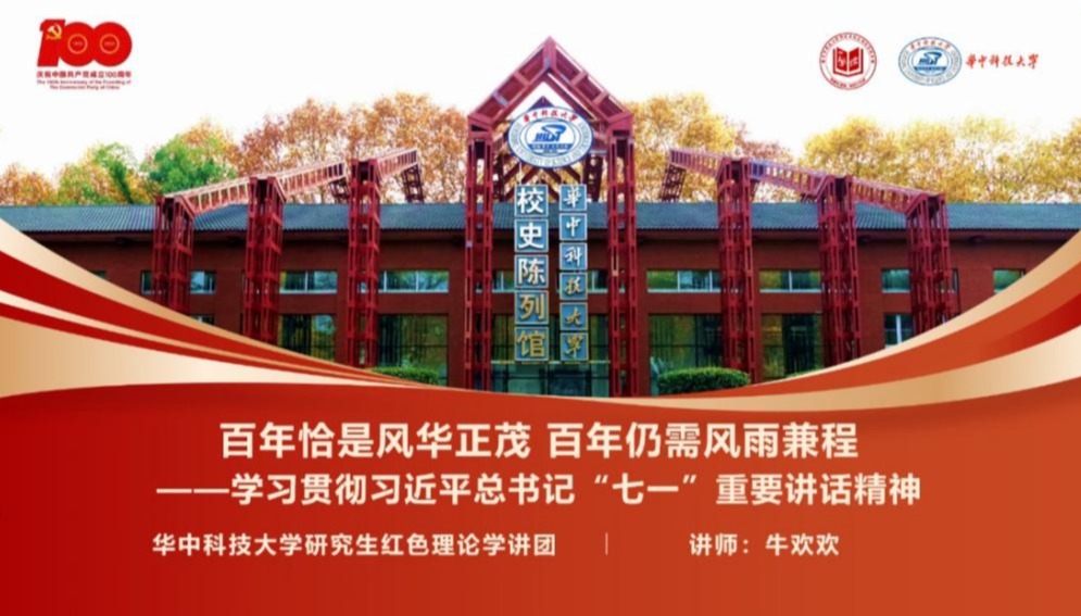 牛欢欢同志给党员同志们讲授了题为“百年风华正茂,百年仍需风雨兼程——学习贯彻习近平总书记‘七一’重要讲话精神”的微党课,精彩而又生动。她先后介绍了庆祝大会概况、习近平总书记重要讲话全文概览、习近平总书记重要讲话学习点睛以及身为华中大学子的党员担当。牛欢欢同志着重为大家讲解了此次七一讲话中习近平总书记所流露出来的人民情怀、历史情怀以及世界情怀,并分别介绍了崔崑、黄群、王一苇等华中大的优秀党员以此来激励党员同志们。