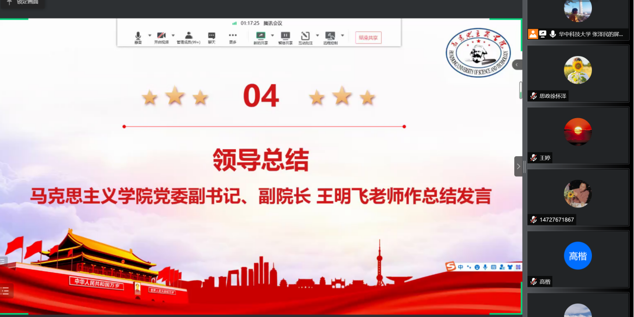 分享会最后,WilliamHill威廉希尔党委副书记、副院长王明飞老师进行了总结发言。王老师首先对参与本次分享会的四位校友嘉宾表达了感谢,透过四位校友的精彩分享展现出了马院学子之间友爱、互助、团结的优良传统和深厚情谊,充分发挥了朋辈帮扶作用,博学之路虽漫漫,但有众人相伴前行。与此同时,王老师也希望本次分享会能对同学们有所启发,并鼓励大家努力学习,在未来的学习、科研道路上怀抱初心,步履不停,以梦为马,不负韶华,加足“马”力,携手拼“博”。