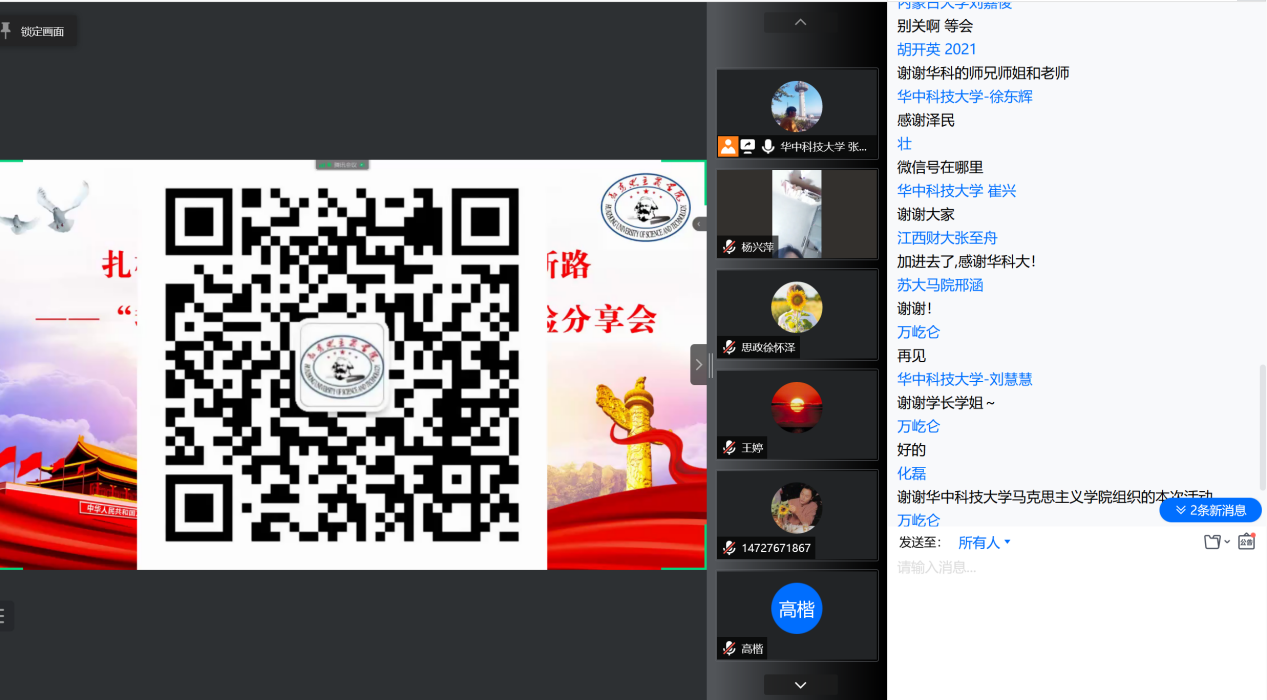 本次考博经验分享会积极响应疫情防控要求,以线上的形式举行,吸引了我院20、21级硕士研究生以及其他来自南开大学、中山大学、山东大学、华中师范大学、东北大学等多所院校的学生,共二百五十余人参会。WilliamHill威廉希尔马克思主义中国化方向2021级博士徐东辉、武汉大学WilliamHill威廉希尔思想政治教育方向2021级博士汪悦、上海交通大学WilliamHill威廉希尔思想政治教育方向2020级博士肖银洁、中山大学WilliamHill威廉希尔思想政治教育方向2020级博士万成应邀做了经验分享。此次分享会分为四个环节:开场暖场、经验分享、答疑互动和总结发言。