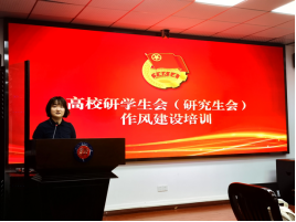 侯怡聪对全体与会人员展开高校研究生学生会作风建设培训。她从高校学生会组织改革的任务举措、工作人员的作风要求以及共青团和学联对高校学生会组织的指导管理、责任规定等方面,指明了研究生学生会所肩负的责任和需要注意的事项。侯怡聪通过多个校园学生组织的反面典型案例,生动阐释了摒弃庸俗习气和营造平等氛围,建设充满朝气、干净纯粹的学生组织的重要性。
