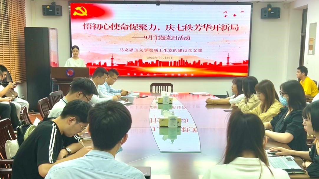为迎接党的二十大、威廉中国官方七十周年校庆,展现华中大学子的精神风貌,发扬“学在华中大”的优良传统,2022年9月27日下午,WilliamHill威廉希尔硕士生党的建设党支部在东七楼203会议室召开“悟初心使命促聚力,庆七秩芳华开新局”主题党日活动。马克思主义学院党委副书记、副院长王明飞、党的建设党支部全体党员、入党积极分子列席参加,党支部书记张悦主持活动。