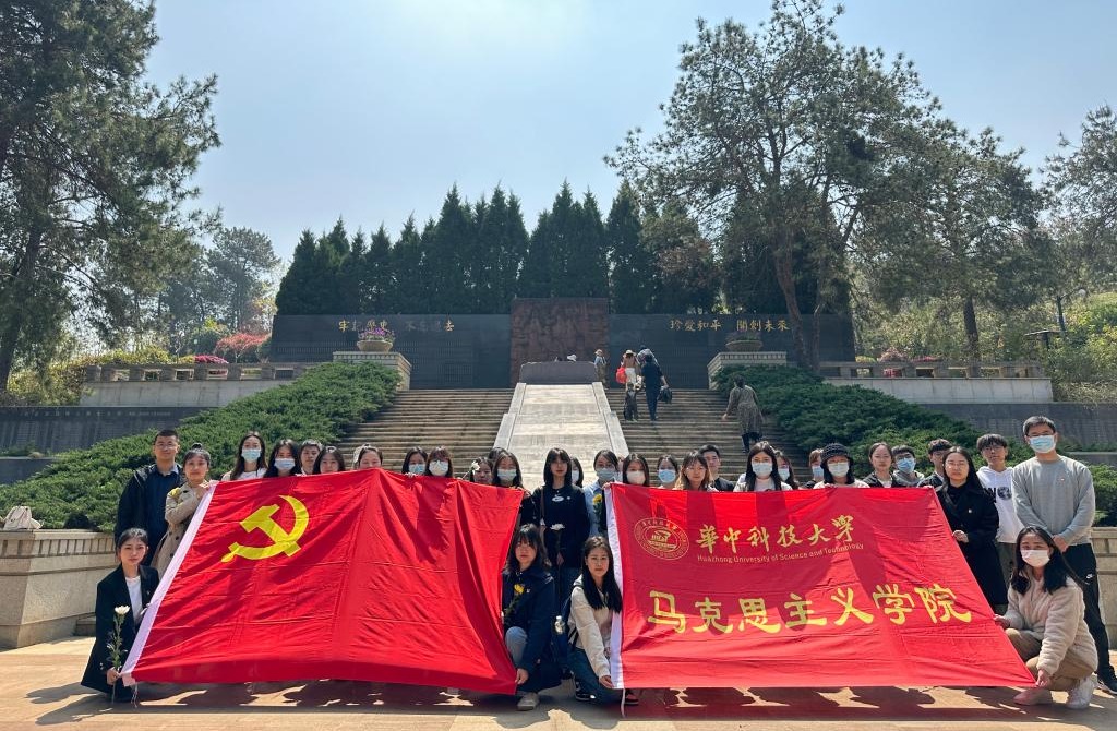 活动第二项,于武汉抗战纪念园举行本次清明节祭扫活动的祭奠仪式。首先,全体同志向烈士默哀一分钟。随后,德育导师沈孝鹏老师在烈士纪念碑前讲话,希望大家更加深刻认识到珍惜和平、弘扬爱国主义精神的重大意义。接着,郑启龙同志带领同学们重温武汉抗战历史和英雄事迹,他介绍了武汉会战的背景、过程和结果,以及武汉会战中的空军烈士陈怀民的故事。随后,德育导师唐丽敏老师带领党员代表为烈士敬献花束,同学们携带花束,依次沿石阶而上,向烈士纪念碑献花鞠躬。在烈士墓碑下,全体党员同志重温入党誓词,以铮铮誓言袒露自己向革命先烈学习的决心和牢记使命的初心。