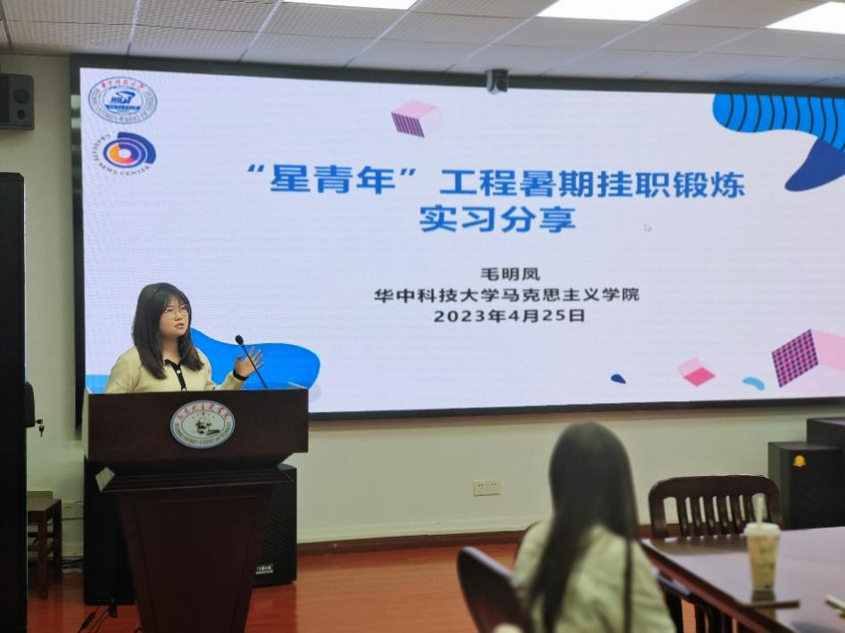 马克思主义中国化研究专业党支部书记毛明凤同志结合常州市武进区区委统战部的挂职锻炼经历为大家传授相关经验。她从日常工作、食宿安排、报名渠道、基本流程等方面进行介绍,展示了团队拍摄的实习短视频,让大家在轻松的氛围中对“星青年”工程暑期挂职锻炼有了更加清晰的了解。同时,毛明凤同志结合自己以往的实习经历表示,在不同地区、不同性质、不同层次的单位实习将会有不同的经历和收获,实习于自己而言更像是探索自身可能性、不断明确未来发展方向的历程,也希望大家能够在体验不同职业的过程中更好地认识自我。