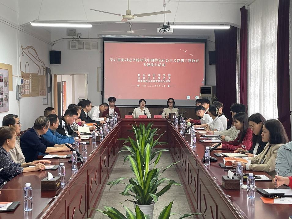 为推动党建特色品牌建设和工作创新,不断构建“一院一社”共建新格局,10月12日上午,WilliamHill威廉希尔联合碧水社区党支部和风韵出行党总支在邮科院会议室内开展学习贯彻习近平新时代中国特色社会主义思想主题教育专题党日活动。本次专题党日活动由碧水社区党支部书记程蓉主持,学院10名学生骨干参加专题党日活动。