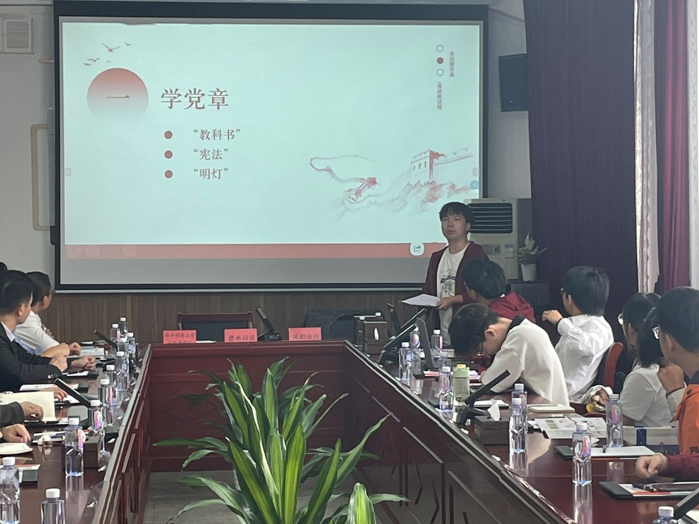 随后,我院硕士研究生、碧水社区书记助理林云从自身学习心得感悟出发,介绍了学习新思想的体会和方法,提出以学习党章、学原著原文和学最新重要动态为主要抓手来全面学习领会党的创新理论。