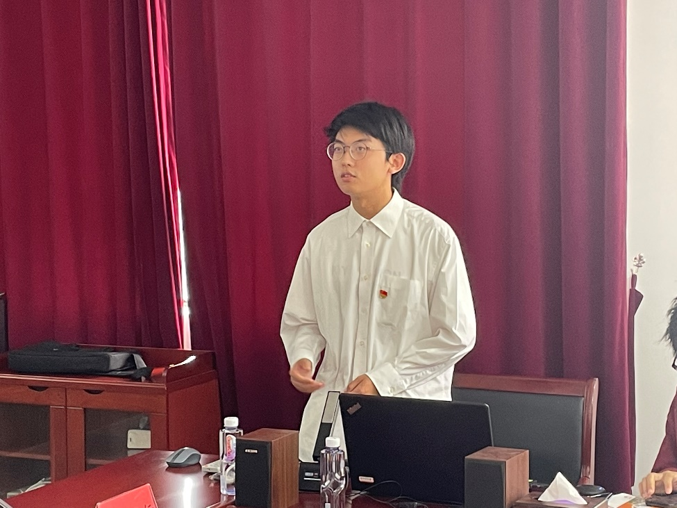 首先,我院硕士研究生、校研究生红色理论学讲团学生讲师郑亚洲以《以学铸魂、以学增智、以学正风、以学促干——学习贯彻习近平新时代中国特色社会主义思想主题教育工作会议精神》为主题讲授了专题党课,他以“何以有、有什么、如何看”为主线,阐释了开展新思想主题教育的重要意义、学习内容和预期效果。